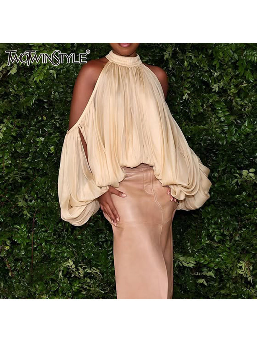 TWOTWINSTYLE Solid Loose Casual Blouses For Women O Neck Sleeveless Temperament