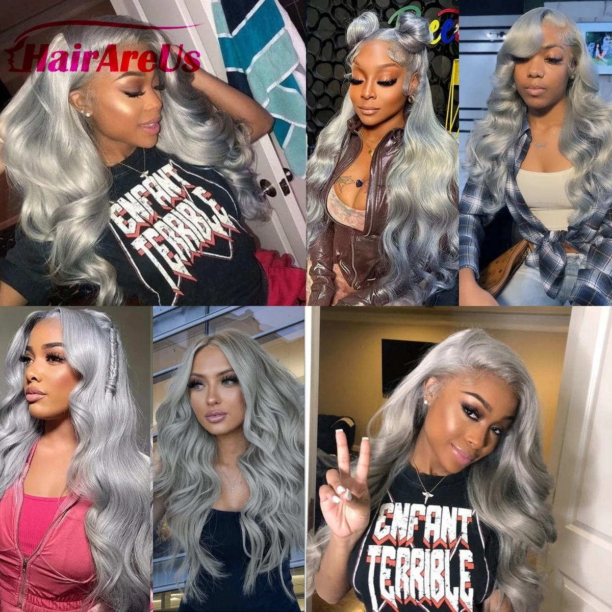 34 Inch Grey Human Hair Wigs Raw Brazilian Silver Body Wave Lace Front Wigs For