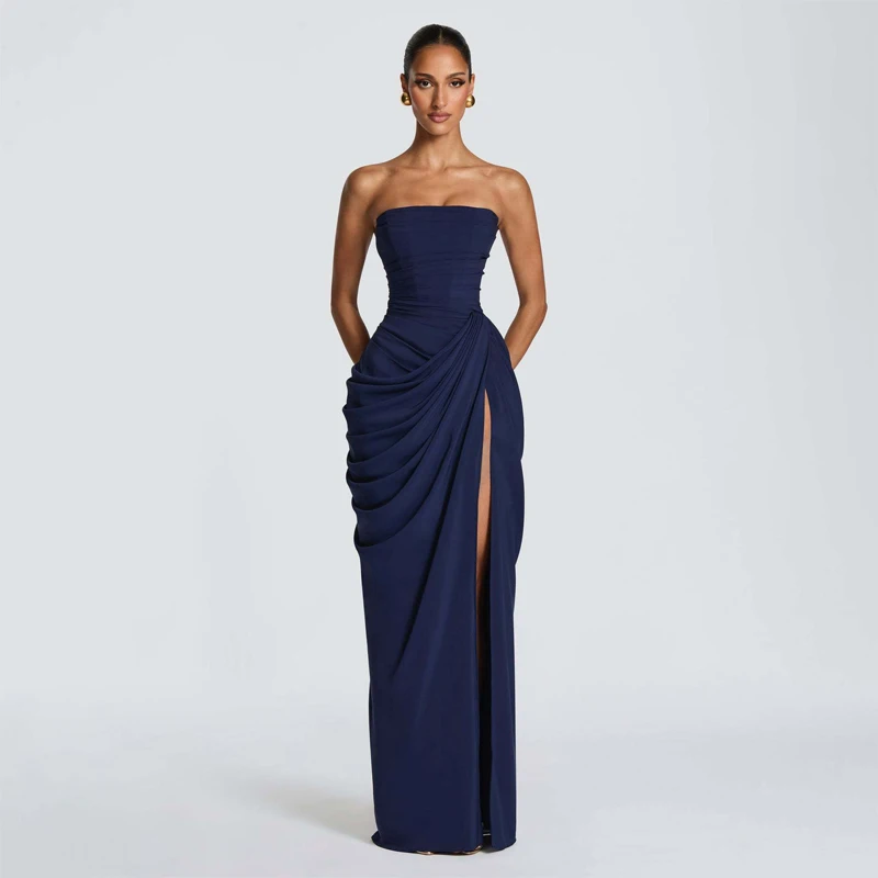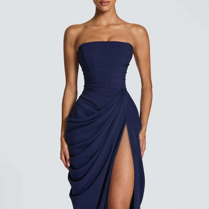 Perfect for evening parties or special events, this gown's solid color and sexy style make it a versatile choice for middle-aged women.