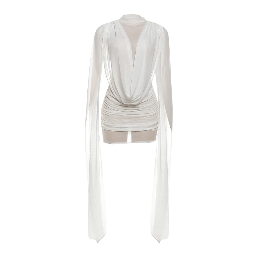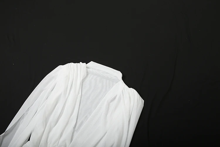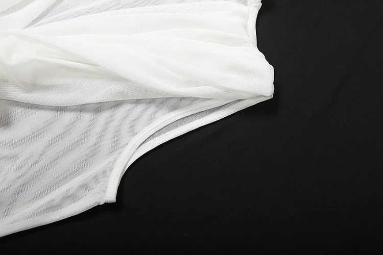 Kliou Mesh Patchwork Mini Dress Woman Swing Collar Sleeveless Long Ribbon Decora