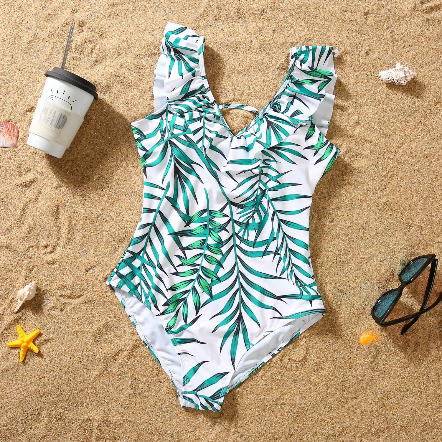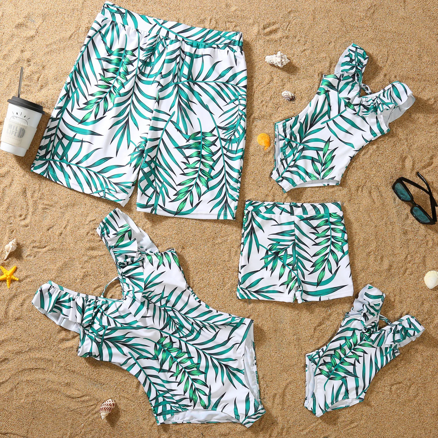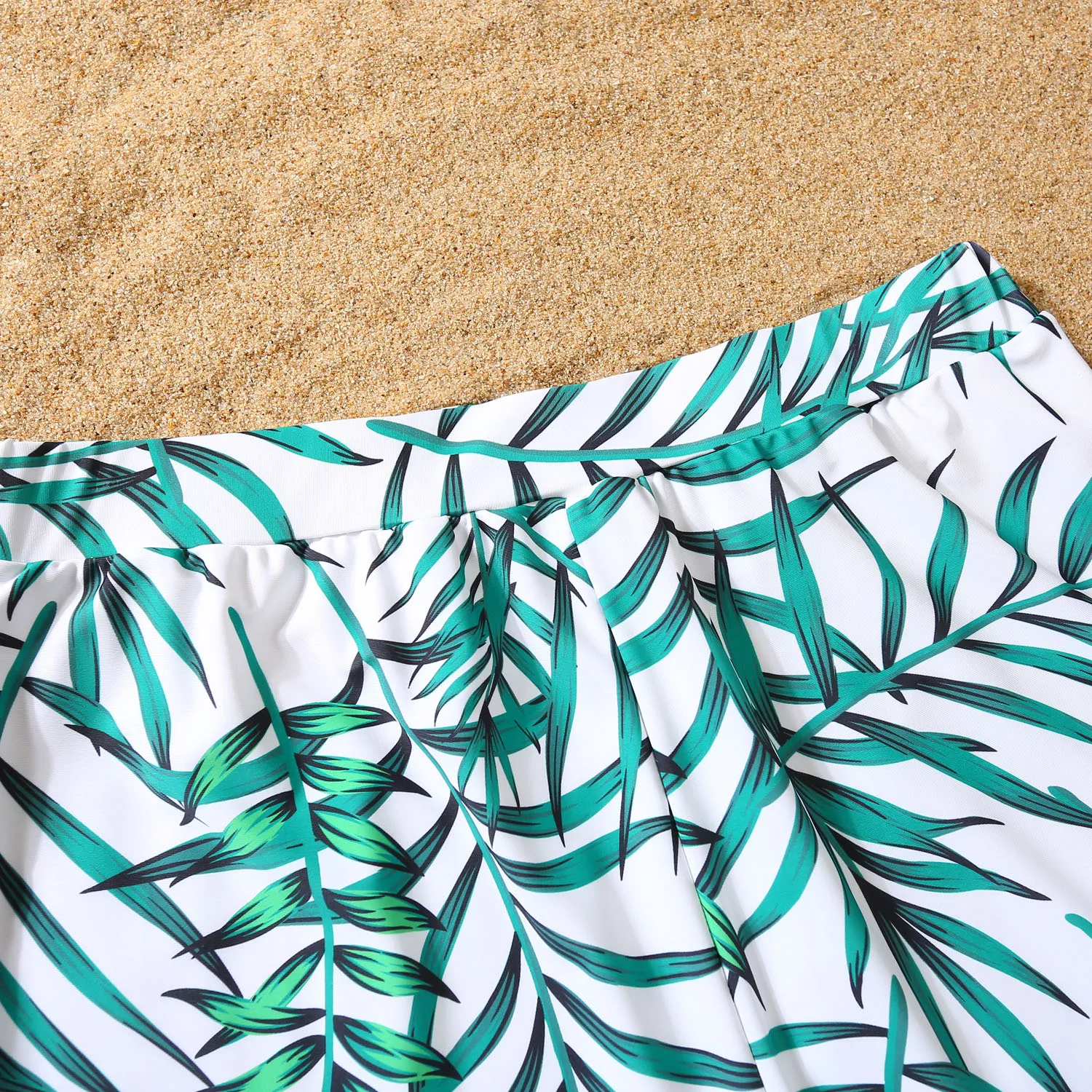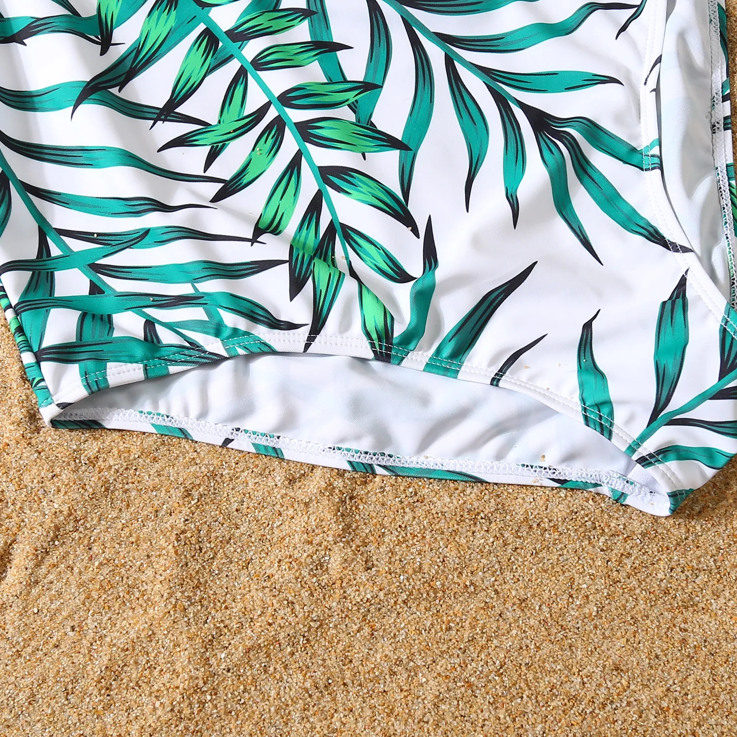 New Family Matching Outfits Leaf Printed Matching Swimsuit Family Look Floral Fu