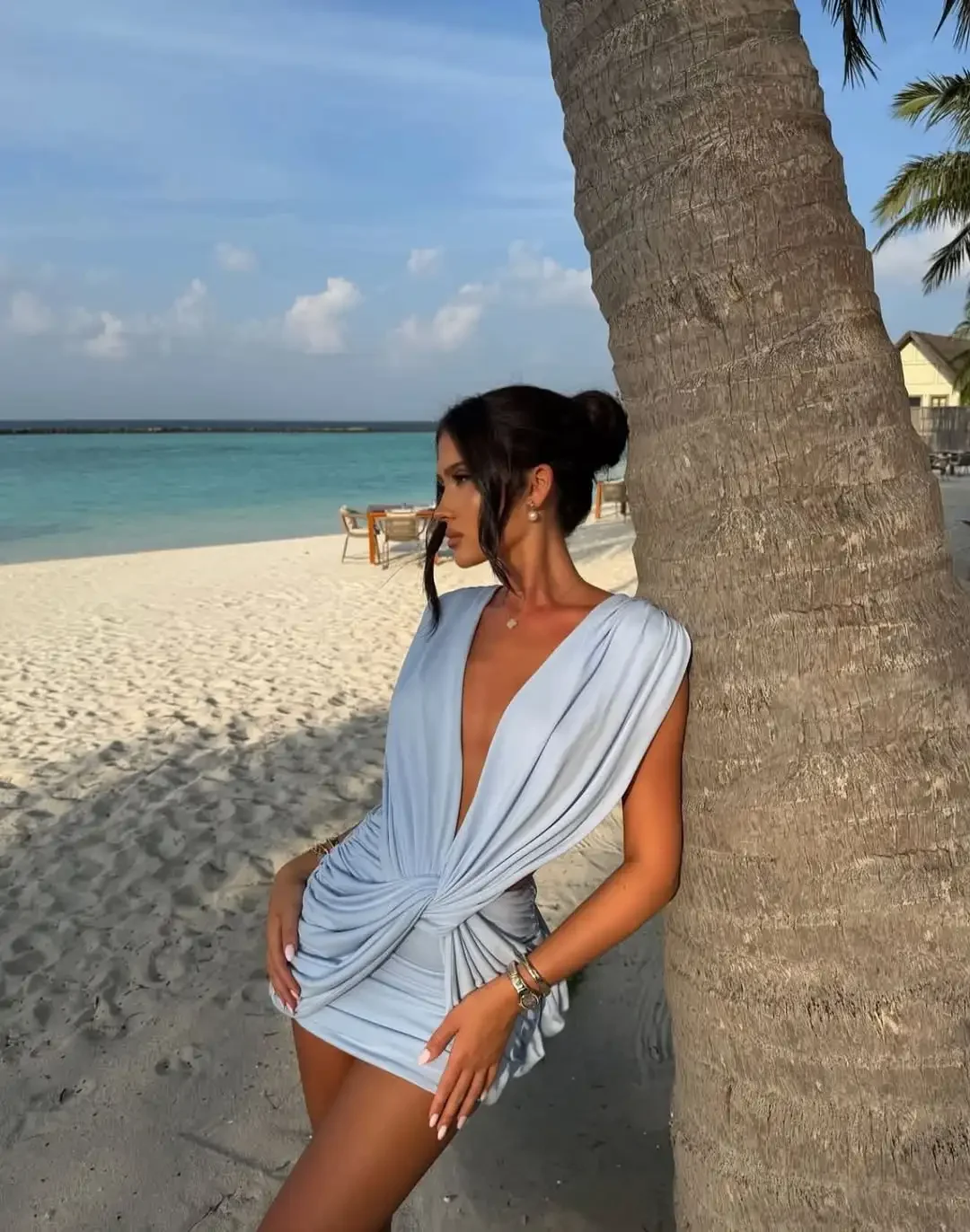 The deep V-neckline adds a touch of sexiness, perfect for a night out or special occasion.