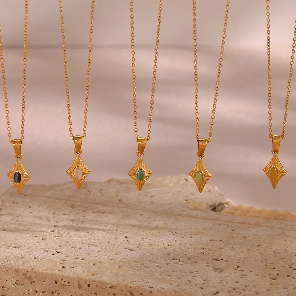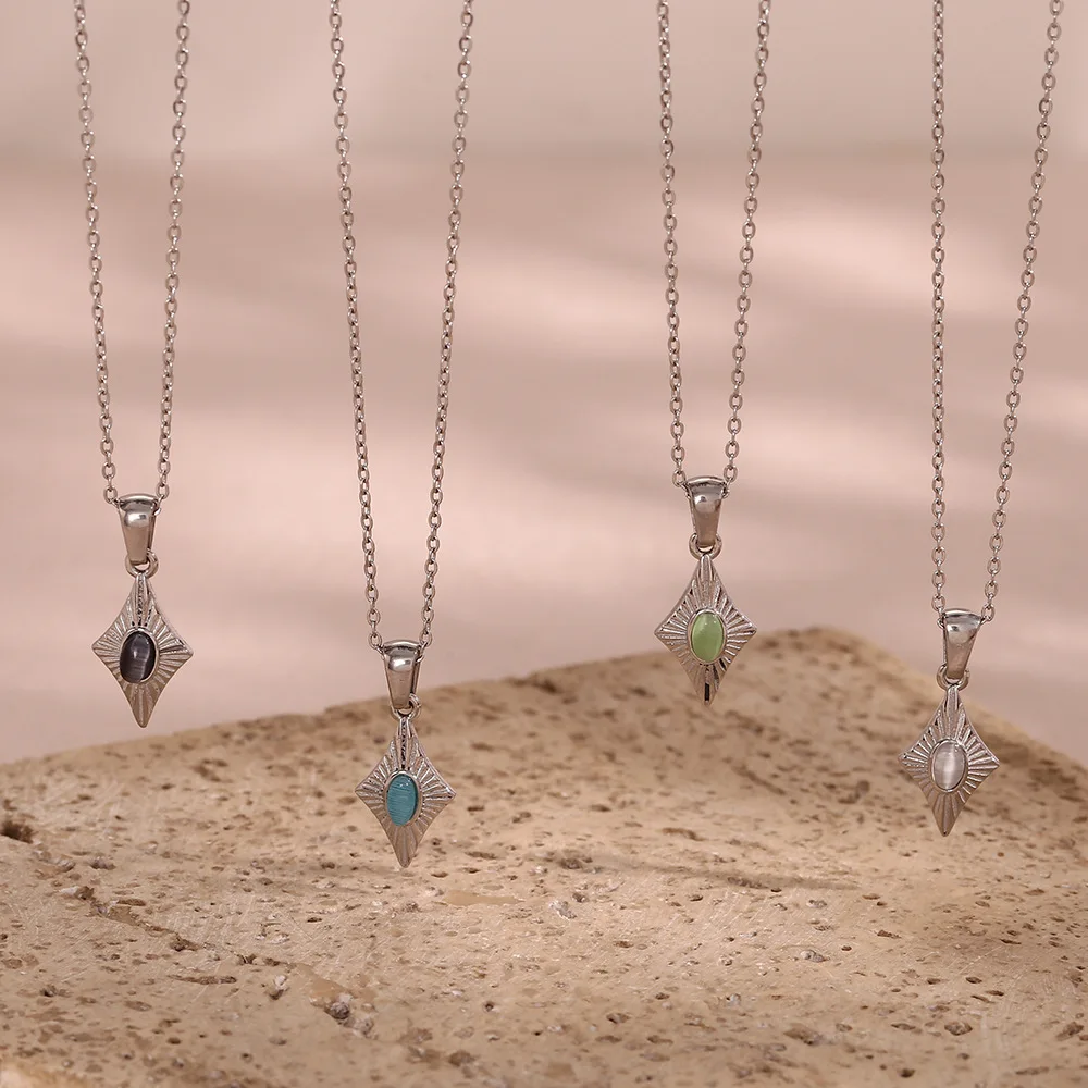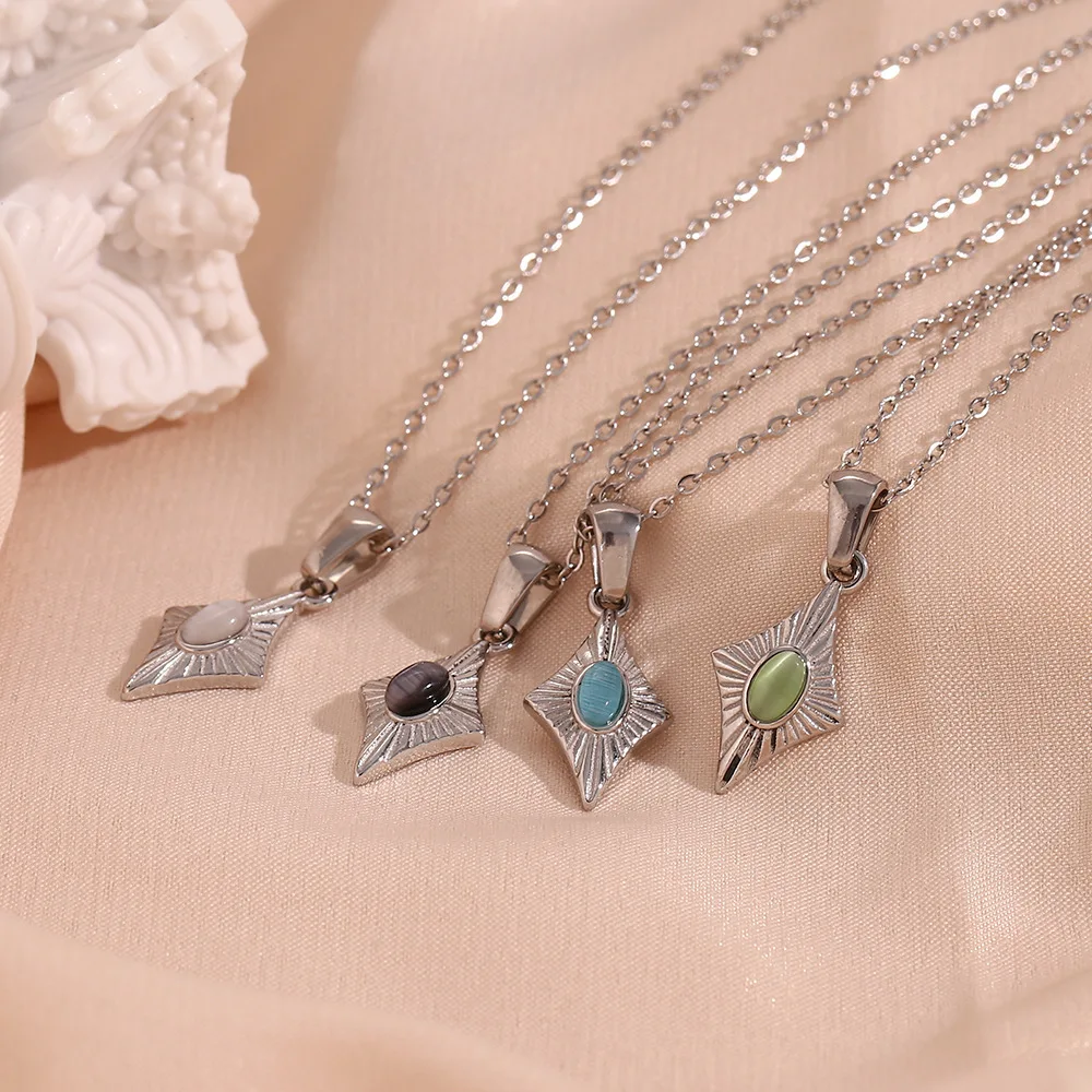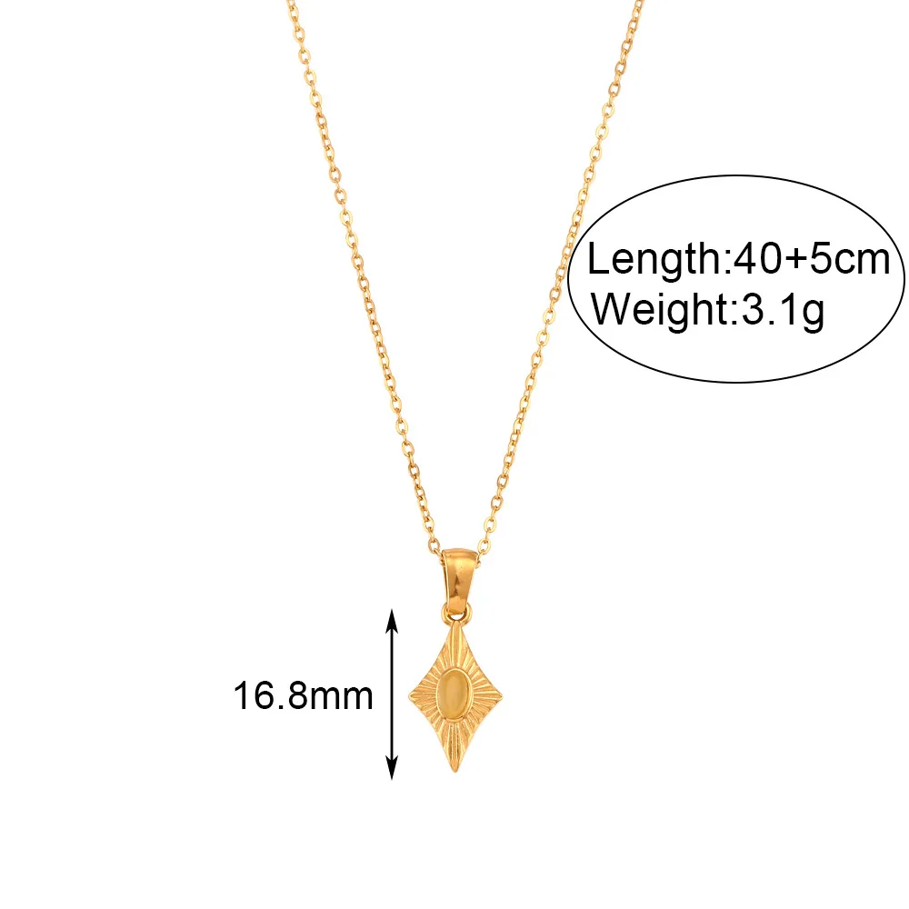 Stainless Steel Simple Faux Opal Geometric Pendant Necklace for Women Plated 18K