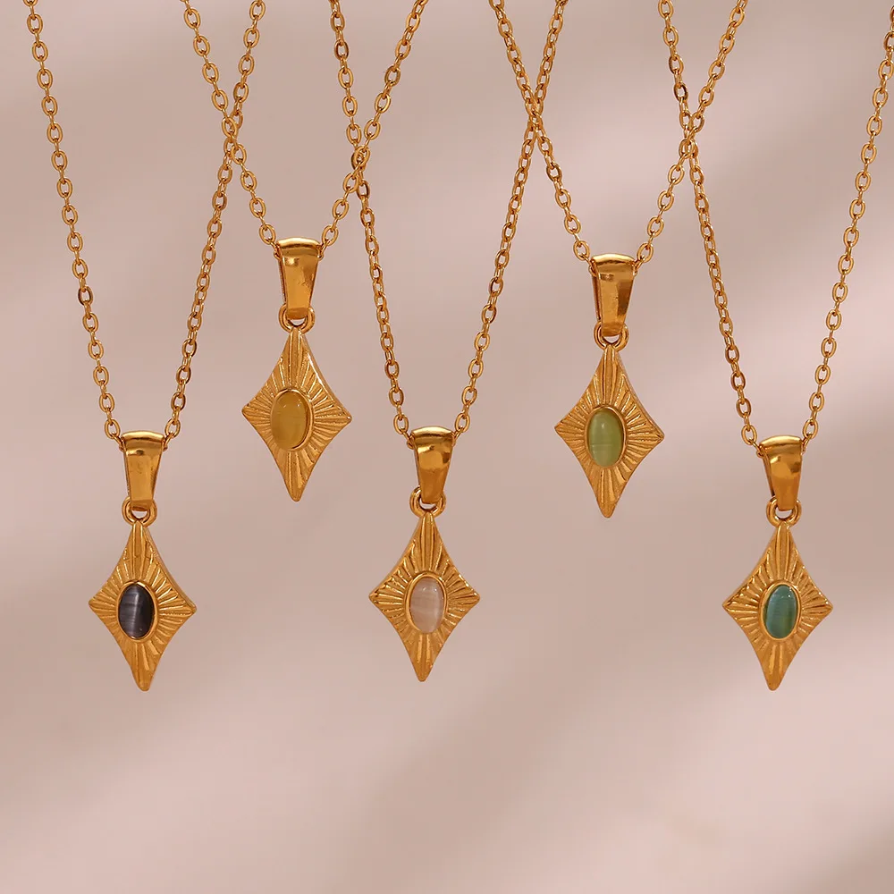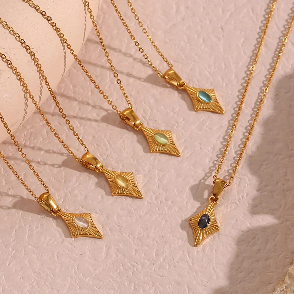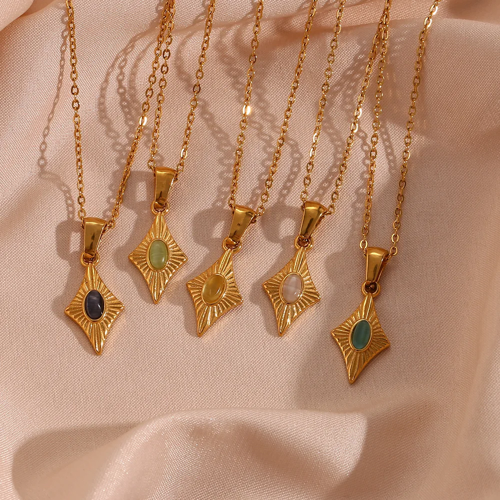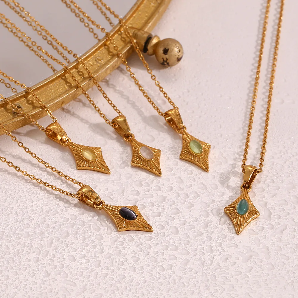 Stainless Steel Simple Faux Opal Geometric Pendant Necklace for Women Plated 18K