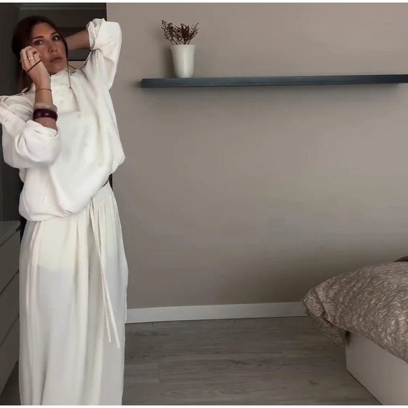 Stand Collar Cropped Top Adjustable Cuff Wide Leg Pants Two-piece Set Single Bre